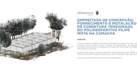 A Câmara Municipal de Santa Cruz vai apresentar, amanhã, às 16h00 e as 17h00, as empreitadas de Conceção, Fornecimento e Instalação de Cobertura Tensionada no Polidesportivo da Camacha e Mercado Agrícola do Santo da Serra, que terão lugar no Salão Nobre da autarquia.