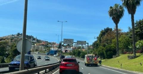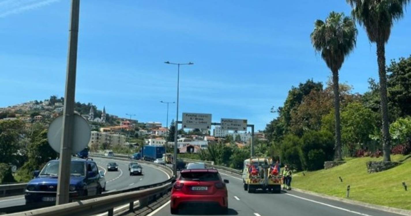 Um camião, alegadamente avariado, está a congestionar a via rápida, junto à saída para Santo António.
