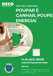 A Junta de Freguesia do Caniço, em parceria com a DECO, promove no próximo dia 14 de abril, às 18h30, uma sessão informativa gratuita sobre eficiência energética, sob o mote ‘Poupar é ganhar, poupe energia!’.