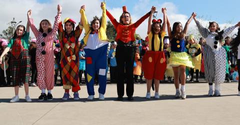 O Cortejo de Carnaval da EB1/PE do Caniço, na freguesia do Caniço, contou com a participação de 500 elementos e um carro alegórico.