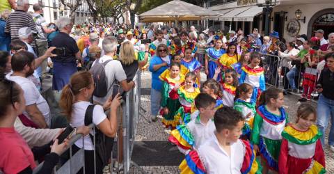 Milhares de pessoas, entre as quais muitos turistas, assistem ao desfile, que tem passerelle na Avenida Arriaga, onde decorre o Mercado do Carnaval.