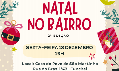 Esta sexta-feira, a partir das 19h, a Casa do Povo de São Martinho acolhe nas suas instalações, a segunda edição do “Natal no Bairro”, iniciativa em parceria com a ADNM Associação Diáspora no mundo.