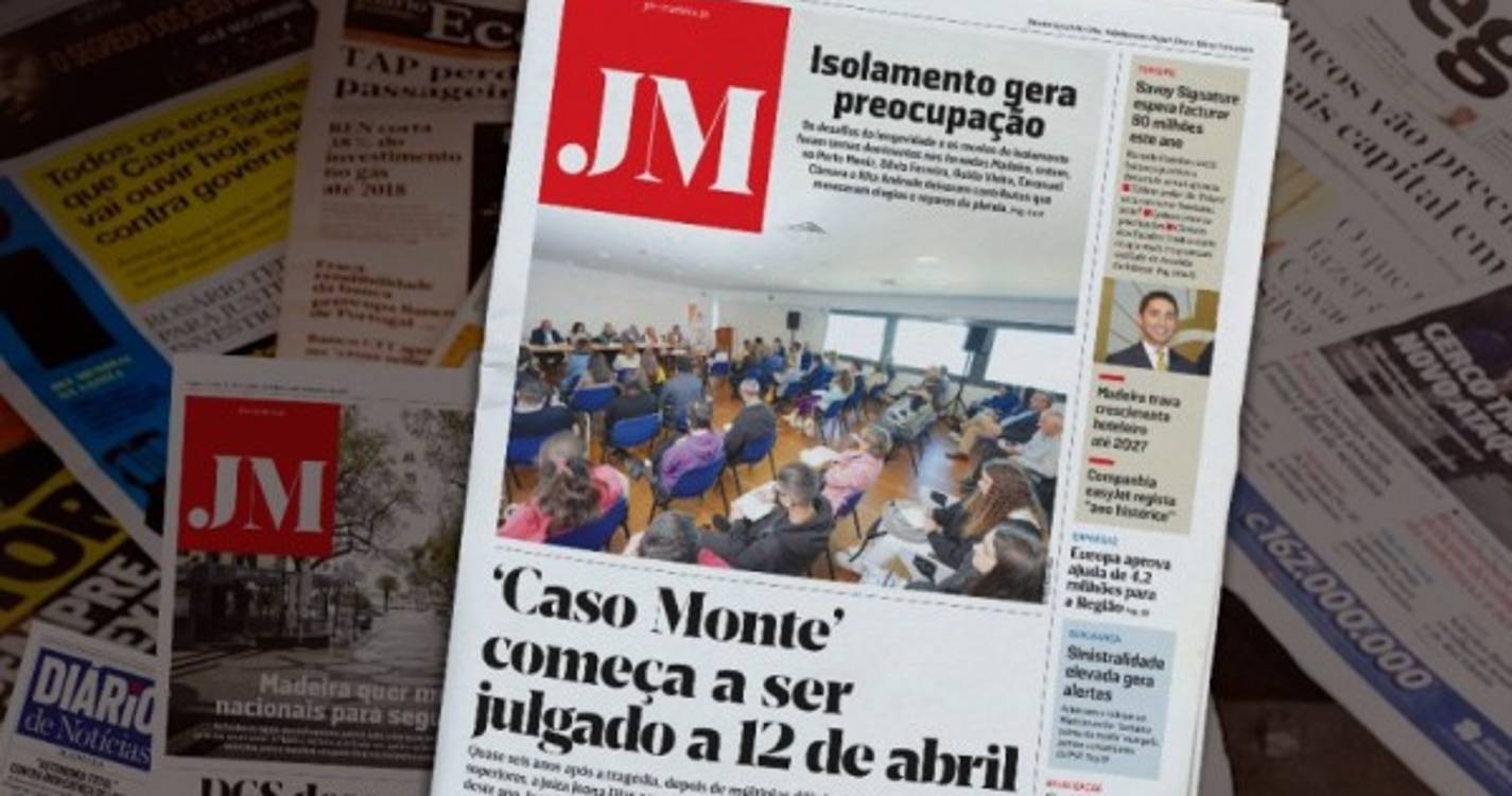 Esta é a notícia que faz a manchete de hoje do seu JM, numa Primeira Página que destaca uma iniciativa do seu Jornal. Isolamento gera preocupação. Os desafios da longevidade e os receios do isolamento foram temas dominantes nas Jornadas Madeira, ontem, no Porto Moniz. Sílvia Ferreira, Guida Vieira, Emanuel Câmara e Rita Andrade deixaram contributos que mereceram elogios e reparos da plateia.