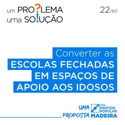 O CDS alerta para a existência de mais de mil pessoas em lista de espera para internamento em lares, além de mais de 200 idosos com alta hospitalar sem condições para regressar a casa. Assim, reitera a proposta de converter o Hospital Dr. Nélio Mendonça, após a conclusão do novo Hospital da Madeira, numa unidade especializada de apoio aos idosos, integrando várias valências de cuidado.