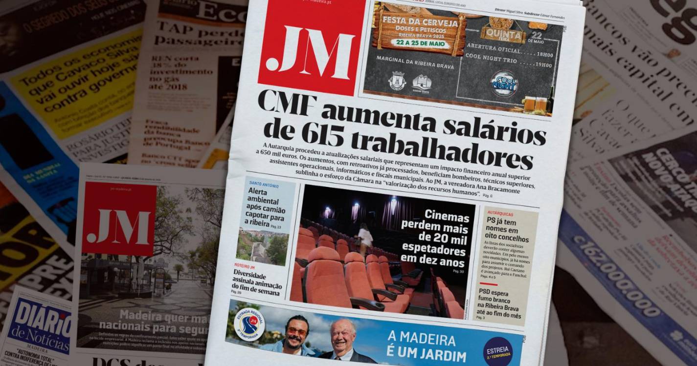 Esta é a notícia que faz a manchete de hoje do seu JM, numa Primeira Página que destaca as autárquicas. PS já tem nomes em oito concelhos. As listas dos socialistas deverão conter algumas novidades. Em pelo menos oito municípios, já há nomes para assumir o comando dos projetos. Rui Caetano é avançado para o Funchal. PSD espera fumo branco na Ribeira Brava até ao fim do mês.