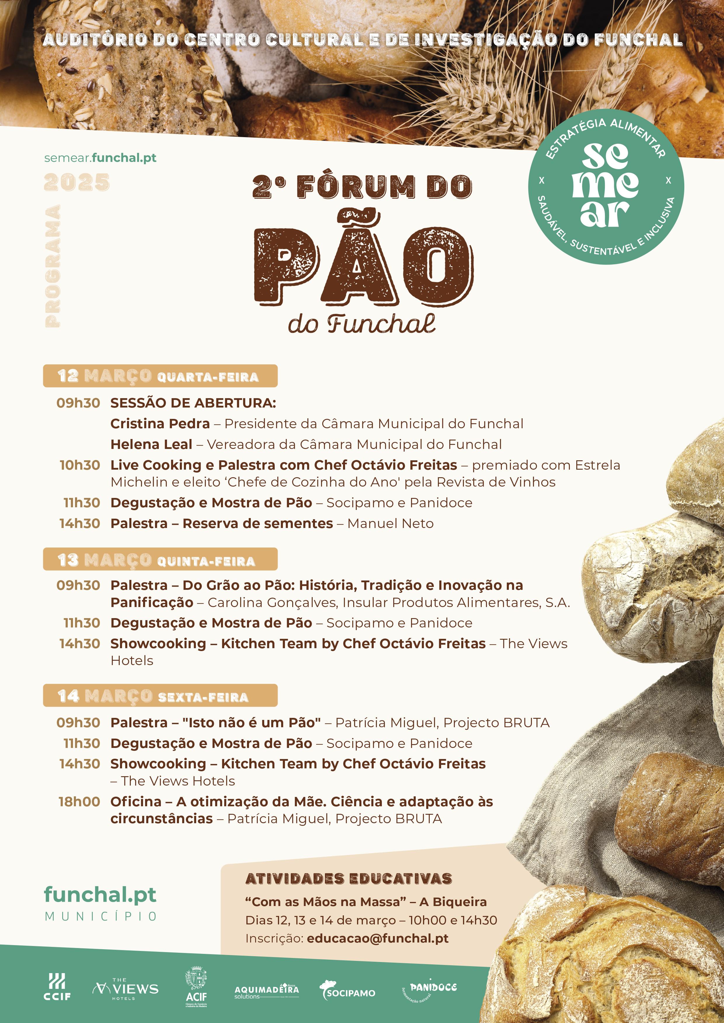 A Câmara Municipal do Funchal, através do Divisão de Educação, promove de 12 a 14 de março a segunda edição do Fórum do Pão, no Centro Cultural e de Investigação do Funchal.