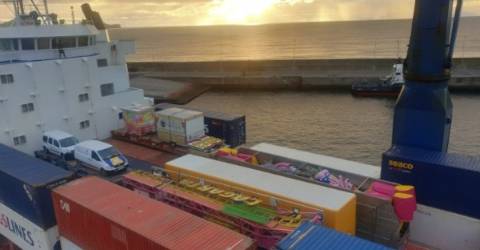 O material para as feiras de Natal na Madeira já começou a chegar ao Porto do Caniçal.
