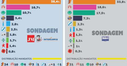 Com 801 entrevistas, a sondagem apresentada pelo JM, feita pela Intercampus, dá 38,4% à candidatura do PSD, o que coloca os social-democratas mais perto de chegar à maioria absoluta, traduzida na possível distribuição de até 24 mandatos.
