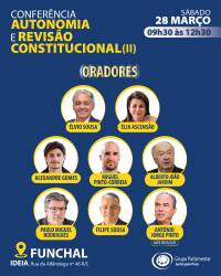 O Grupo Parlamentar do Juntos Pelo Povo (JPP) promove este sábado, 28 de março, uma conferência dedicada ao tema ‘Autonomia e Revisão Constitucional (II)’, no espaço IDEIA, no Funchal, entre as 09h30 e as 12h30.