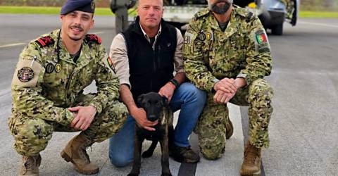 A cadela que já se encontra na Escola de Fuzileiros para iniciar o percurso de preparação e treino, foi entregue à Marinha Portuguesa pelo Terra do Geranium, no Funchal, tendo o seu transporte sido realizado o apoio da Força Aérea Portuguesa