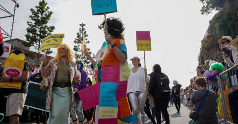 No Cortejo Trapalhão 2024, que já tem 15 minutos de desfile, já se viu palhaços, padres, galos, galinhas, um pacote de pipocas, noivos e macacos. Uma referência também ao Hospital ‘Maria Santa’ ( Santa Maria), com algumas grávidas à espera de serem atendidas depois de tirarem a senha.