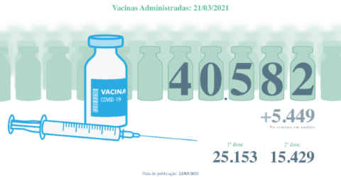 Até este domingo, dia 21 de março, foram administradas na Região 40.582 vacinas contra a covid-19, desde o dia 31 de dezembro de 2020.