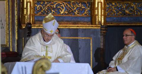 D. Nuno Brás tomou posse como 33.º bispo da Diocese do Funchal, na Sé, em fevereiro de 2019, sucedendo a D. António Carrilho.