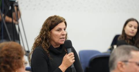 Da plateia, a professora Maria do Céu falou da atual conjuntura do ensino, com 25 anos na Escola. Hoje é mais complicado do que 50 alunos há décadas. Os pais protegem os meninos que vêm para a escola e não sabem estar numa sala de aulas, em muitos casos, comentou.