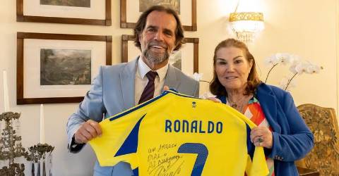 “Fui agradavelmente surpreendido, esta semana, pela minha querida Dolores Aveiro, que me veio oferecer uma camisola autografada do Cristiano Ronaldo. Agradeço muito esta surpresa, bem como a atenção e mensagem do nosso CR7”, escreveu Albuquerque.