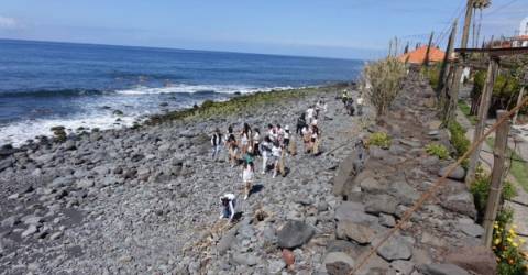 No dia 5 de maio, a turma B, do oitavo ano de escolaridade, da Escola básica 2º/3ºciclos Cónego João Jacinto Gonçalves de Andrade, juntamente com os alunos do clube EcoEscolas, realizaram uma visita de estudo à Fajã dos Padres, que decorreu entre as 9h e as 15h. Esta atividade insere-se no projeto "Brigada #AMARoMar", que vai ao encontro do Projeto Interdisciplinar da turma, 8ºB, intitulado" Poluição - Oceanos de lixo". A "Brigada #AMARoMar", é um projeto a nível nacional, que visa alertar para a problemática do lixo marinho. A atividade teve início com uma ação de sensibilização dinamizada por dois técnicos do Instituto de Florestas e Conservação da Natureza (IFCN). Posteriormente foi entregue um Kit limpeza de praia, a cada grupo de alunos, composto por luvas, sacos reutilizáveis para recolha de resíduos, 1 prancha em cartão com uma ficha de monitorização para registo do lixo recolhido e alguns grupos tiveram acesso a uma pinça "apanha-lixo". Os alunos procederam à limpeza da praia, recolhendo uma quantidade de lixo considerável e de diversos tipos. Este lixo foi sujeito a pesagem e seguidamente procedeu-se à separação, conforme a tipologia dos resíduos, contagem e novamente a pesagem de cada tipologia. Todos estes dados foram registados nas grelhas de monitorização do projeto "Brigada #AMARoMar". Continuamente, cada aluno envolvido proferiu uma frase a alertar para a problemática do lixo e apelar para a mudança de comportamentos. No final, seguiu-se um momento de pausa para o almoço e como recompensa pelo reconhecimento do trabalho realizado, os alunos tiveram oportunidade de mergulhar, usufruindo livremente da praia, de uma forma mais saudável, numa praia menos poluída. A atividade contou com a colaboração de Fátima Rodrigues, enquanto funcionária da Fajã dos Padres, e cumulativamente encarregada de educação, que supervisionou a realização da atividade neste espaço.