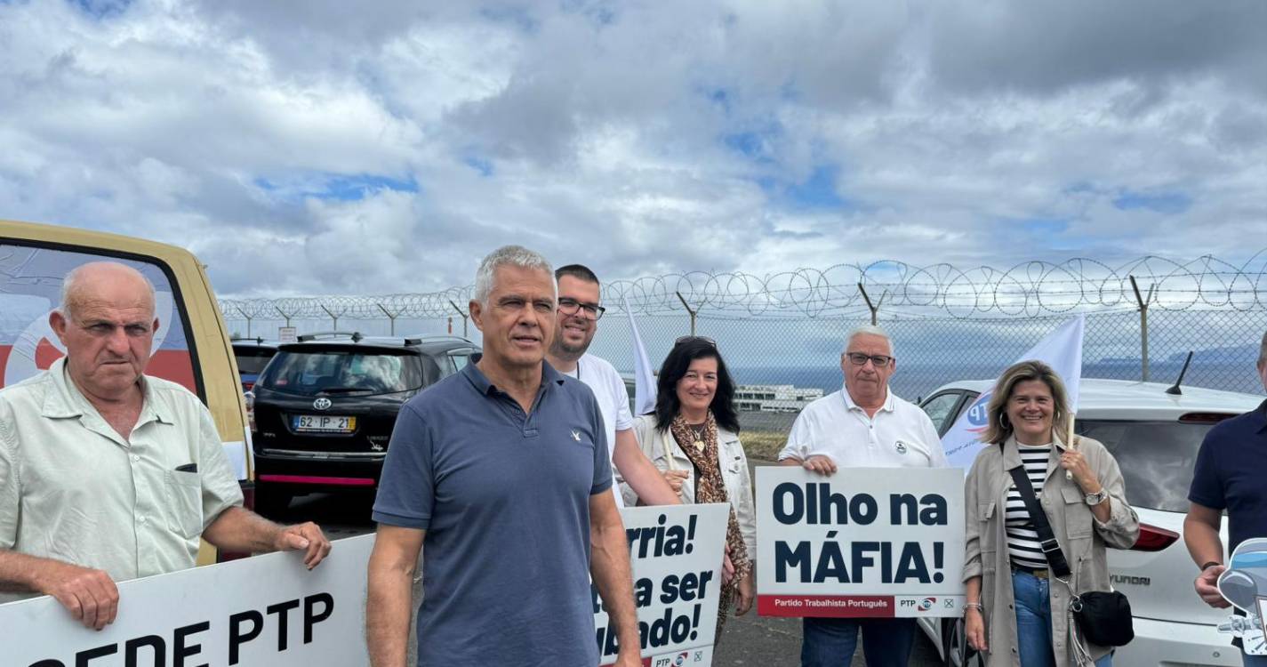 Uma comitiva do Partido Trabalhista Português (PTP) esteve hoje a fazer campanha eleitoral junto à pista do Aeroporto Internacional da Madeira – Cristiano Ronaldo, com alguns cartazes com frases inscritas como “Sorria! Está a ser roubado!” ou “Olho na MÁFIA!”.