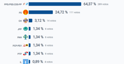 O Chega volta a ocupar a terceira posição, seguido do JPP e PAN.