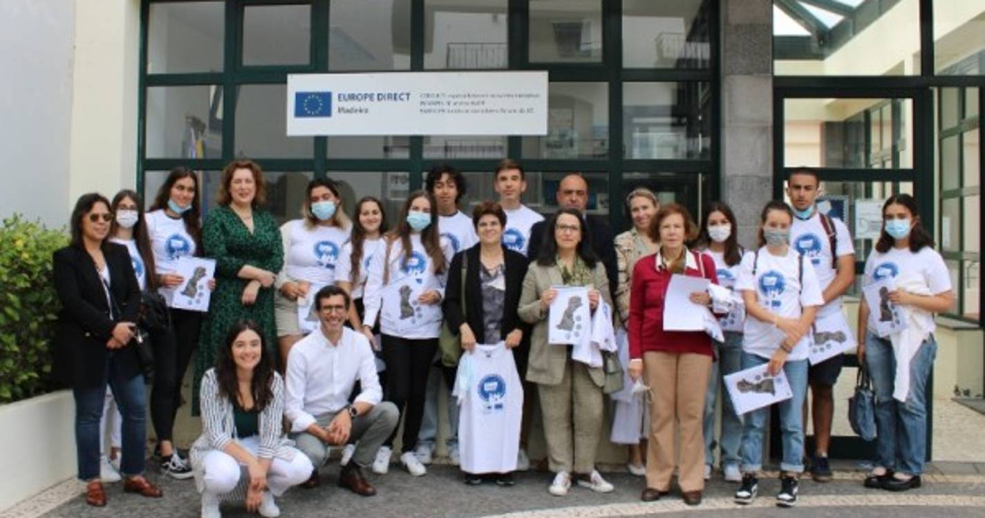 Este encontro reuniu os jovens embaixadores do Parlamento Europeu da Escola Secundária Jaime Moniz, Escola Secundária de Francisco Franco e da Escola Profissional Cristóvão Colombo, acompanhados pelos respetivos professores coordenadores do projeto.