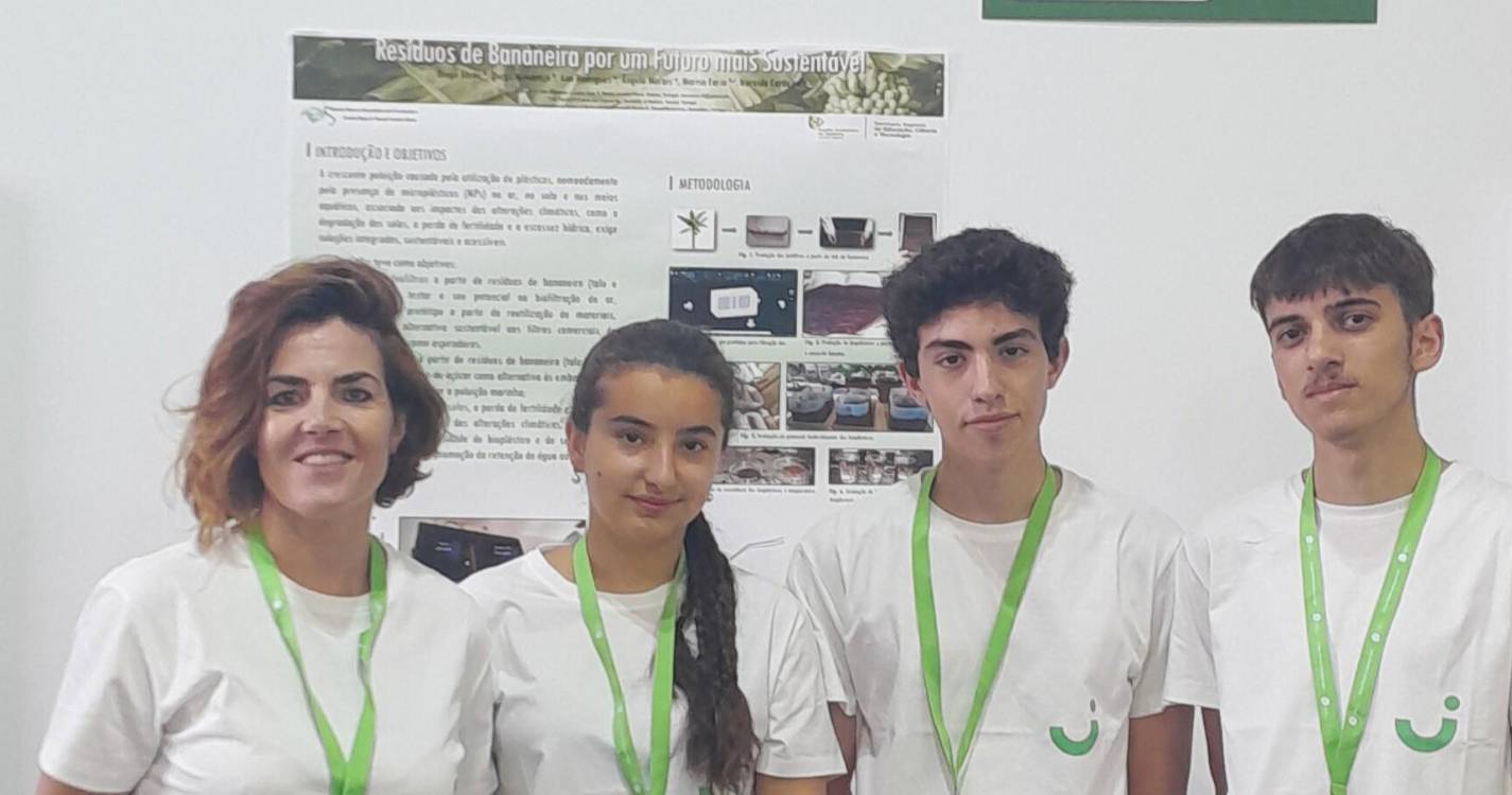 Os alunos Diogo Abreu, Diogo Mendonça e Matilde Mendonça da Escola B+S com Pré-Escolar e Creche Bispo D. Manuel Ferreira Cabral, em Santana, que durante o presente ano letivo desenvolveram o projeto “Resíduos de bananeira por um futuro mais sustentável”, sob orientação da docente Ângela Morais e com o apoio científico da professora Nereida Cordeiro da UMa, foram premiados na Mostra Nacional de Ciência que decorreu de 29 a 31 de maio na Alfândega do Porto.