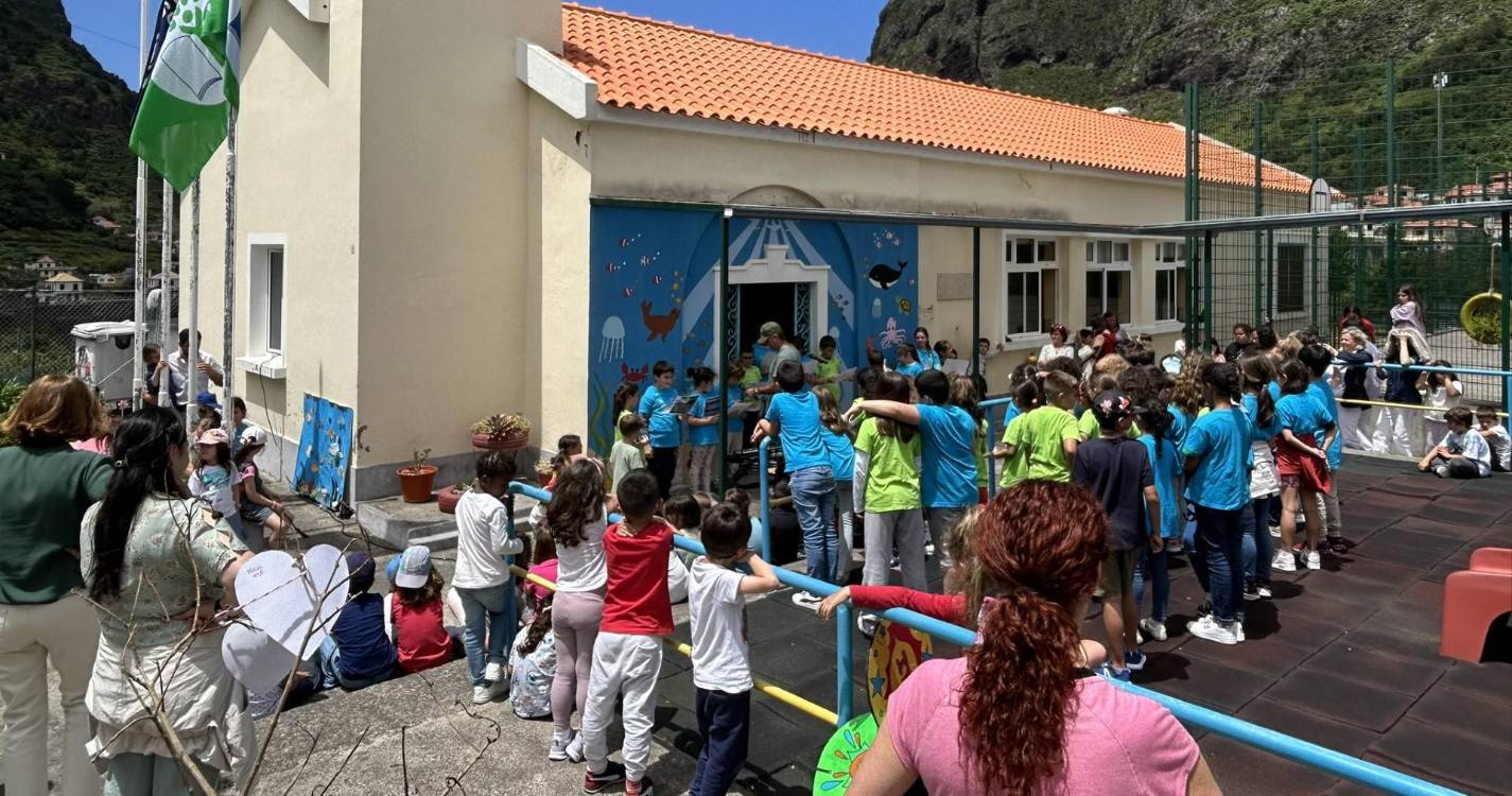 A cerimónia de hastear da Bandeira Verde e da Bandeira Azul na Escola Básica do 1.º Ciclo C/PE e Creche de São Vicente decorreu esta tarde, num momento que simbolizou o reconhecimento do empenho da comunidade escolar em prol da educação ambiental e da sustentabilidade.