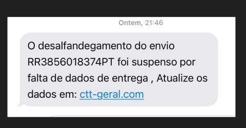 “Alertamos que andam a circular mensagens que dão conta de envios suspensos por falta de dados de entrega. No SMS é pedido que aceda a um link para atualização de dados. Este link remete para um site que não pertence aos CTT. Não se trata de um serviço CTT, mas sim de um esquema para recolha de dados pessoais”, alerta a empresa.