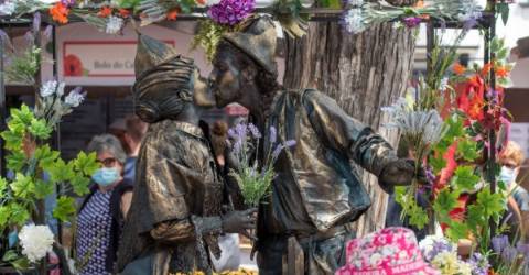 Neste Dia de São Valentim, as estátuas vivas vão oferecer aos visitantes que interagirem consigo, rosas típicas desta data comemorativa.