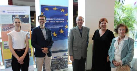 Destaque para uma pequena retrospetiva histórica dos madeirenses que, desde 1986, integraram este Parlamento. Complementarmente à exposição, estão patentes 7 telas de pinturas originais produzidas pelos estudantes do 12°11- Artes Visuais da Escola Secundária Francisco Franco, alusivas ao tema “Chamar a Democracia”, num trabalho coordenado pelo professor Nélio Cabral e que resultou da parceria do Europe Direct Madeira com este estabelecimento de ensino, no âmbito do projeto Escola Embaixadora do Parlamento Europeu.