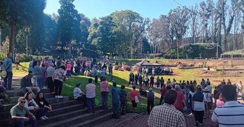 O presidente do Governo Regional e a secretária regional da Agricultura, Pescas e Ambiente já se encontram no recinto da Feira do Gado, no Porto Moniz, onde participaram numa missa e inauguraram um santuário em homenagem a todos os que trabalharam nos incêndios do ano passado.