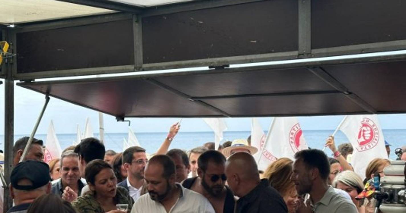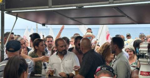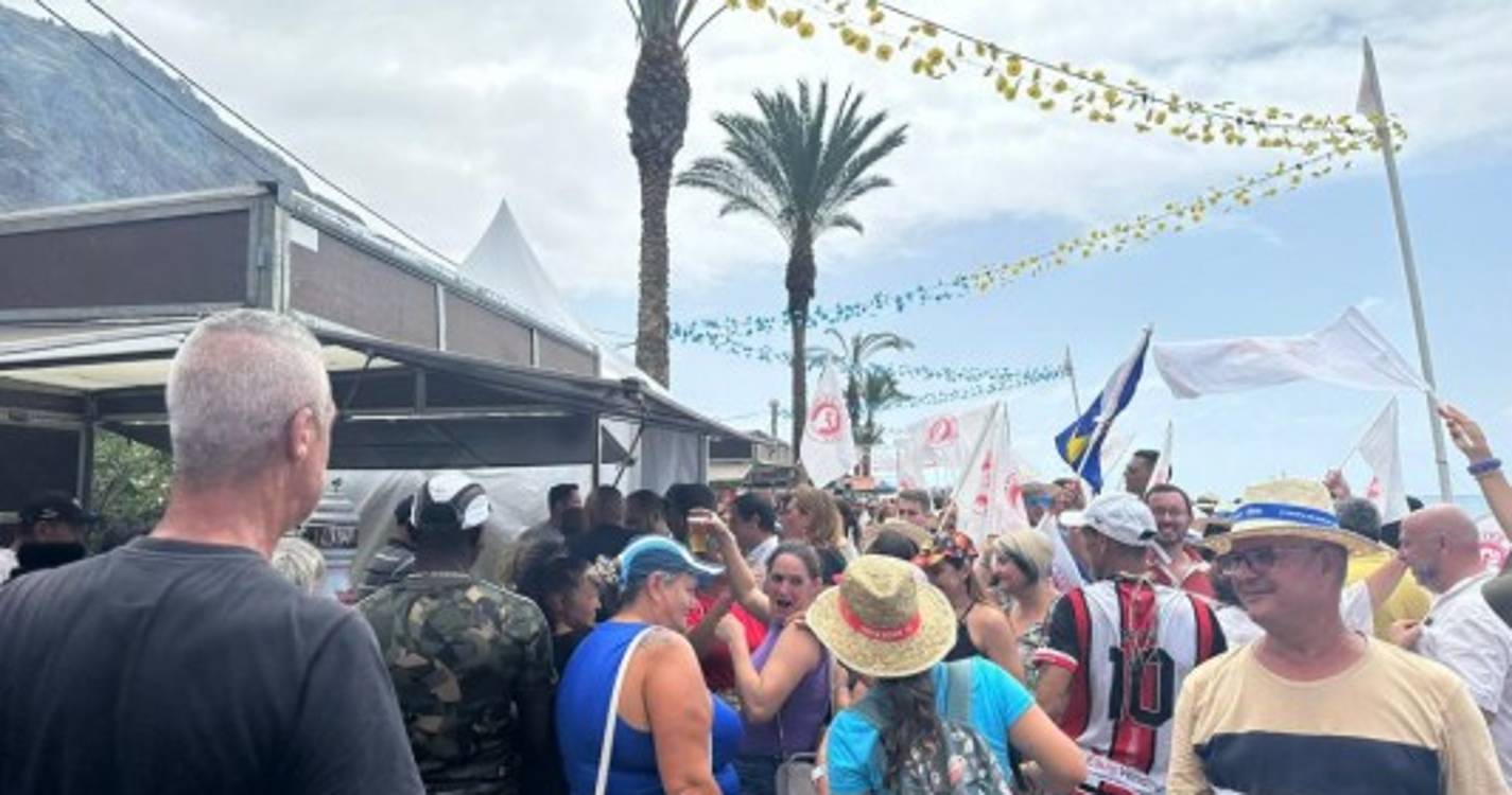 O presidente do PS-M, acompanhado por várias personalidades do partido, vai cumprimentando as pessoas que se encontram na promenade da Madalena do Mar, acenando e distribuindo sorrisos entre os militantes.