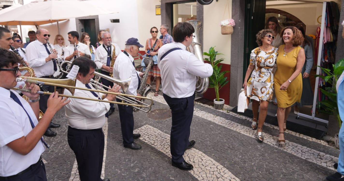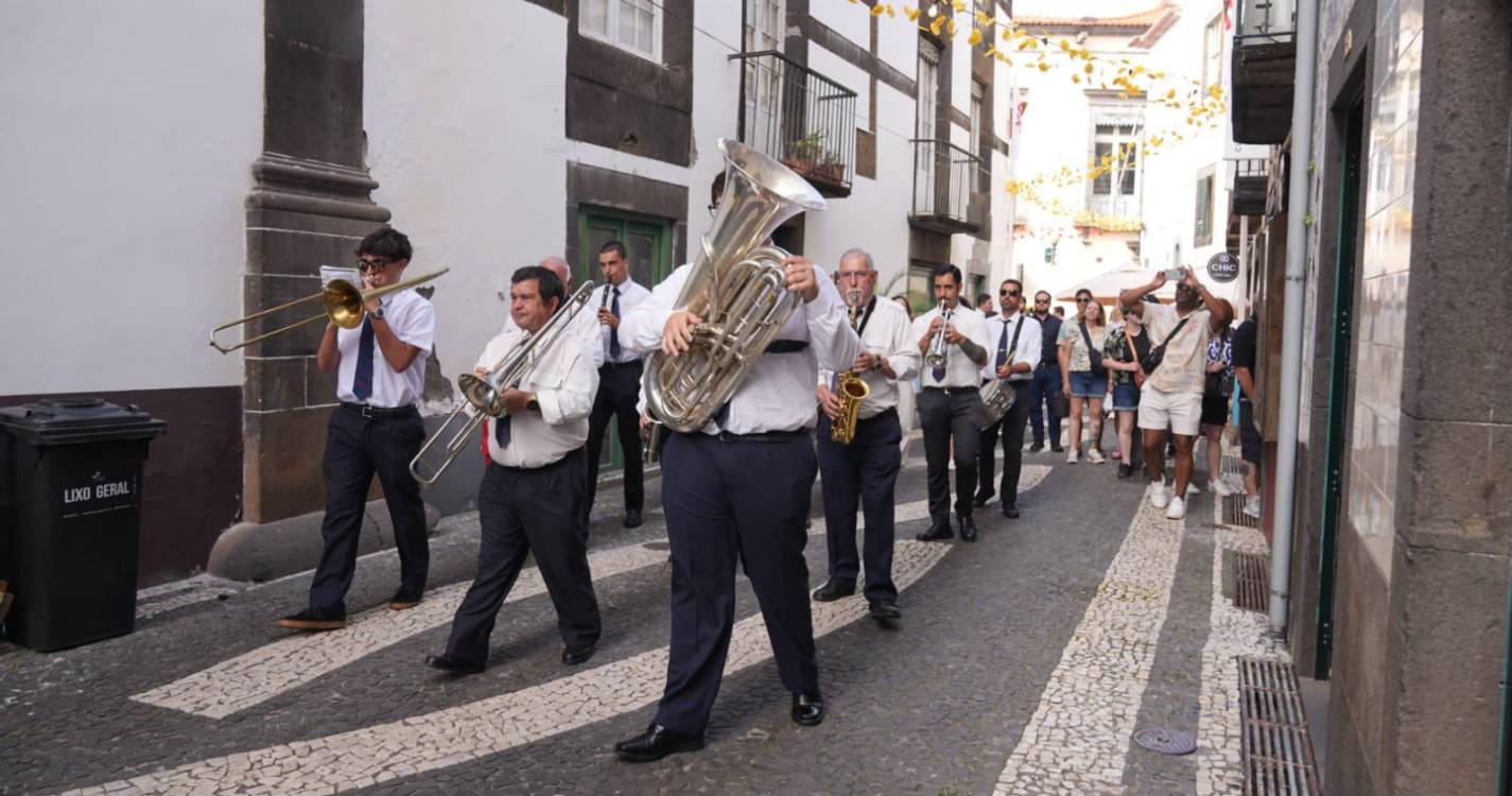A comitiva, a Banda Distrital do Funchal “Os Guerrilhas” e o Grupo de Teatro Bolo do Caco, que tem elementos com andas e malabarismo, estão a animar o ambiente.
