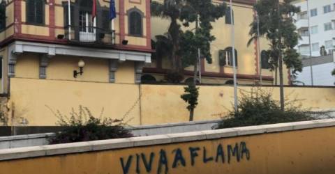 De propósito, ou não, a mensagem que evoca a luta separatista defendida pela Frente de Libertação do Arquipélago da Madeira - FLAMA tem como pano de fundo as bandeiras de Portugal, da Região e da União Europeia hasteadas no edifício do Instituto do Vinho, Bordado e Artesanato da Madeira.