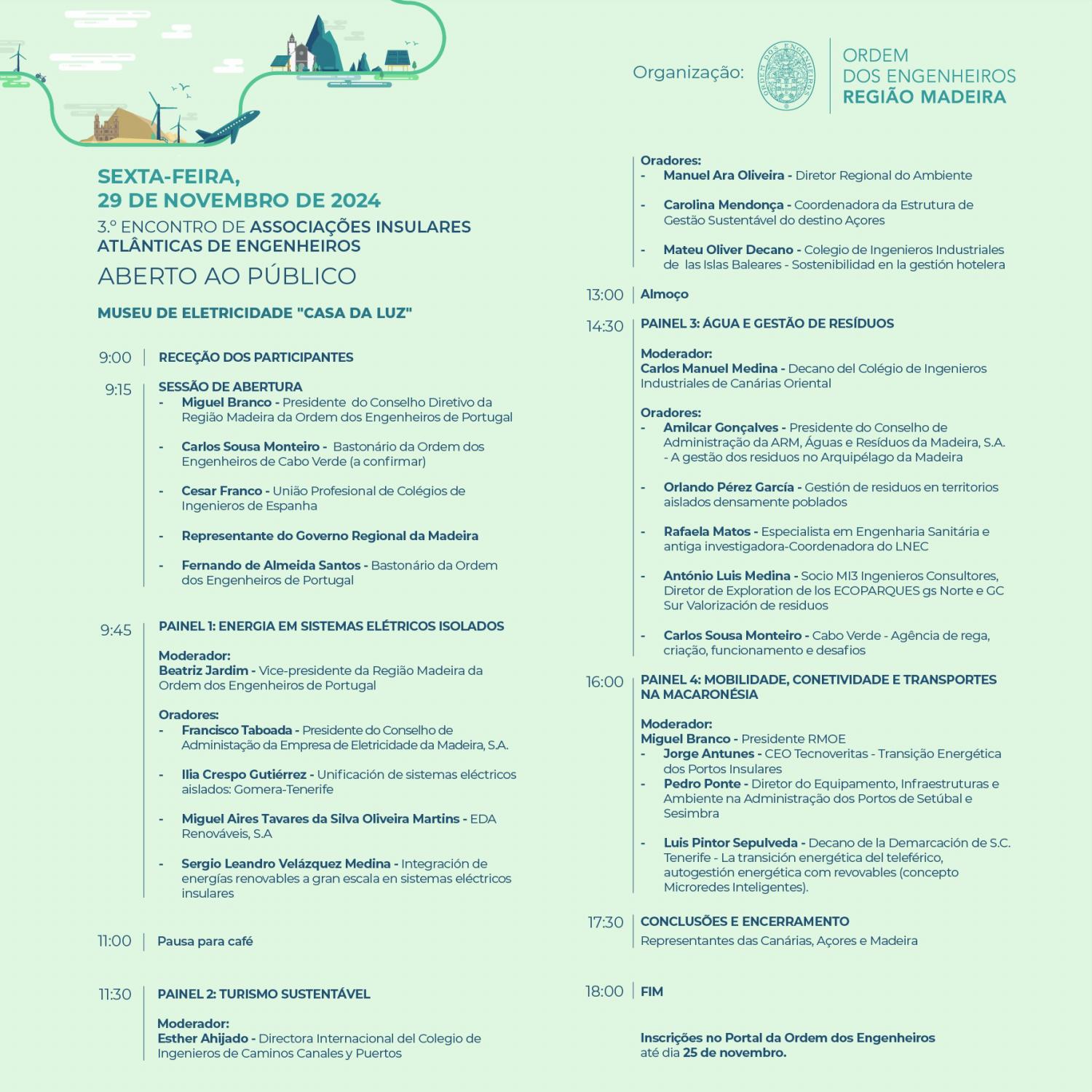 As inscrições estão abertas até ao dia 25 de novembro no portal da Ordem dos Engenheiros. Este encontro, de entrada pública, é uma oportunidade única para promover o desenvolvimento sustentável e a inovação nas regiões insulares atlânticas.
