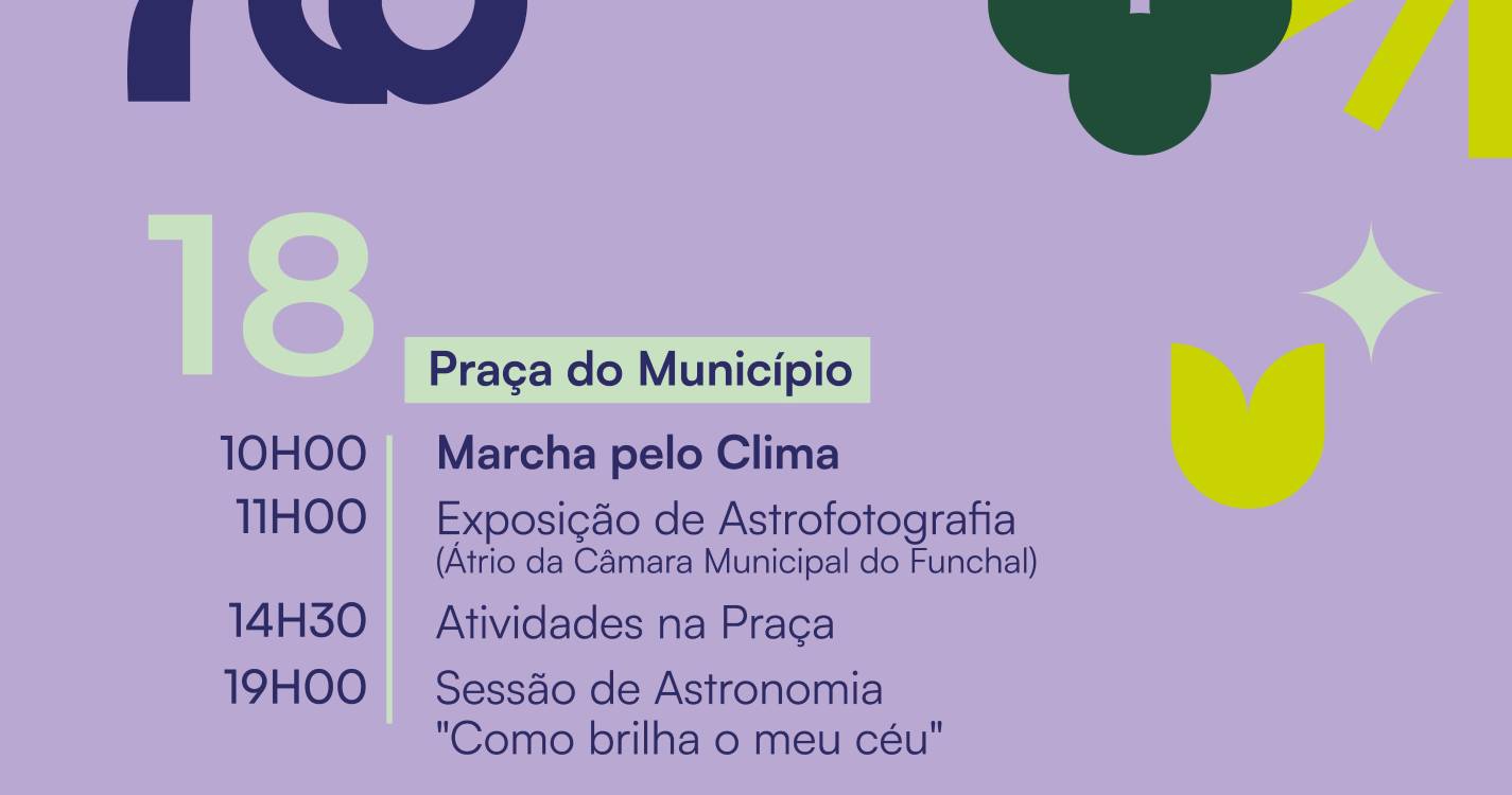 O segundo dia da “Semana do Clima do Funchal” conta com várias atividades na Praça do Município. O dia começa com a “Marcha Pelo Clima!”, às 10h, que terá a participação de crianças de escolas locais, formando uma árvore humana como símbolo da preservação ambiental. A marcha culminará com a canção do Simão, mascote do Departamento de Ambiente da CMF.