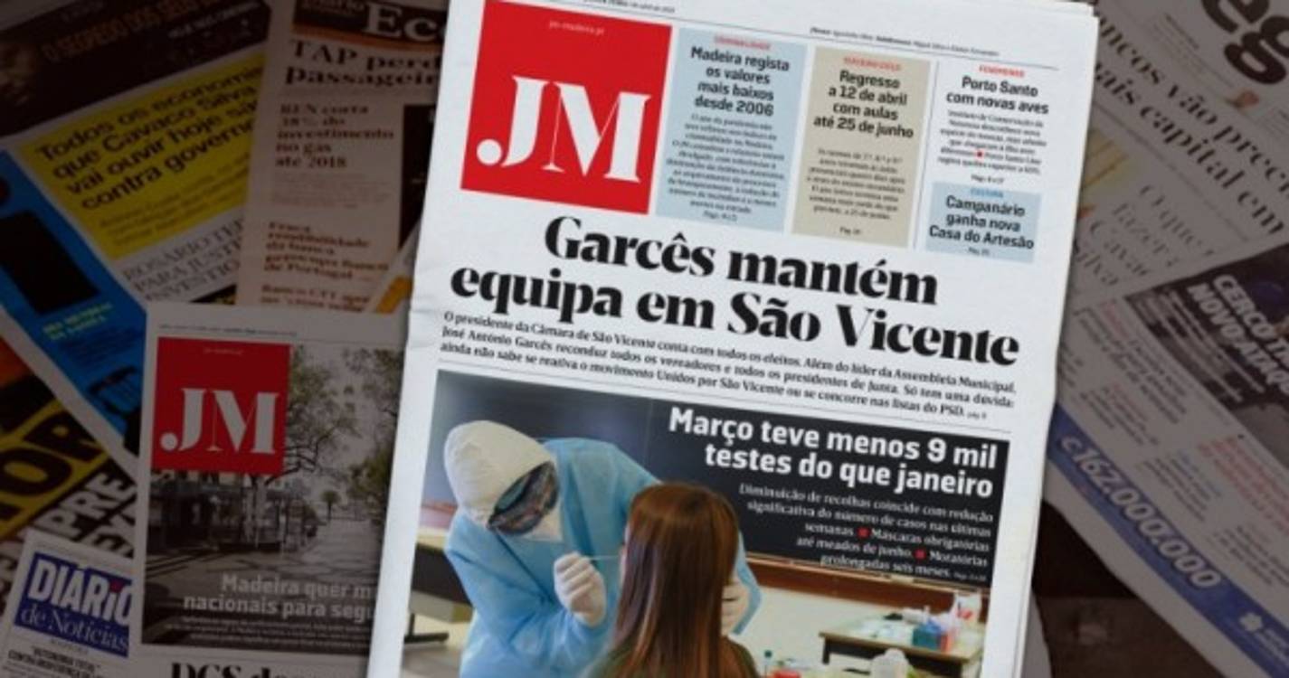 Esta é a notícia que faz a manchete de hoje do seu JM, numa edição que destaca que março teve menos 9 mil testes do que janeiro. Diminuição de recolhas coincide com redução significativa do número de casos nas últimas semanas. Saiba ainda que as máscaras serão obrigatórias até meados de junho e que as moratórias foram prolongadas seis meses.