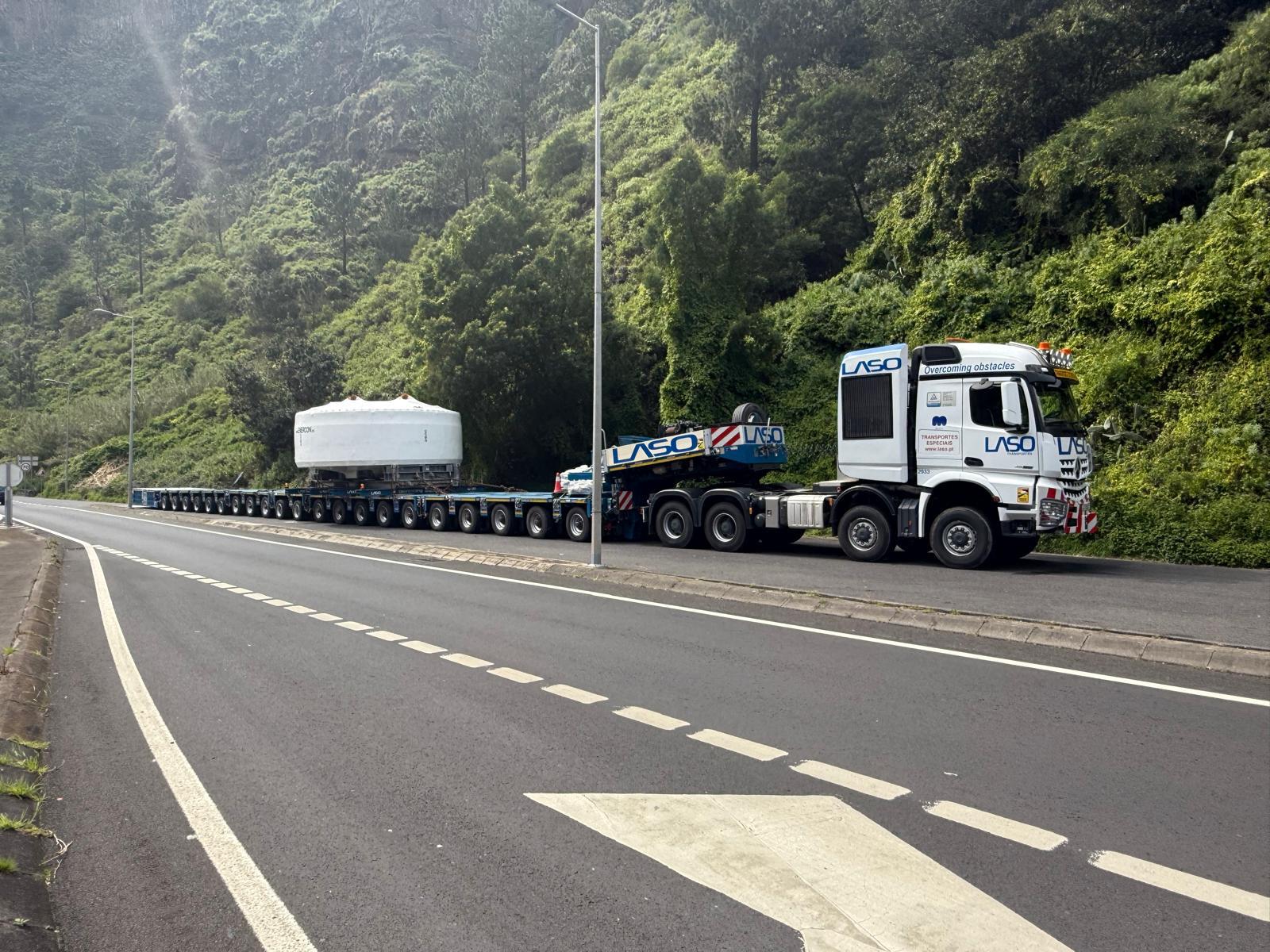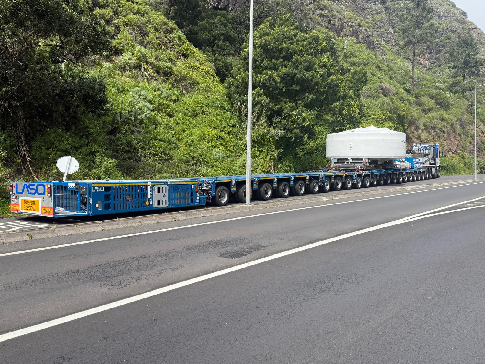 “O trajeto, percorrido ao longo de duas noites, exigiu um planeamento detalhado para garantir a segurança e eficiência da operação. Com 6 metros de largura, o gerador foi transportado num equipamento especializado com 45 metros de comprimento e 134 rodas, permitindo maior estabilidade e adaptabilidade às estradas sinuosas da Madeira. A logística foi cuidadosamente coordenada para minimizar impactos no trânsito e garantir que cada etapa fosse executada dentro do tempo previsto”, refere a LASO em nota de imprensa.