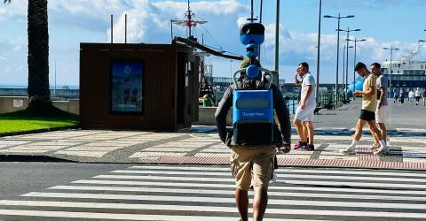 O centro do Funchal está a ser percorrido por um operador equipado com uma câmara Trekker da Google, destinada à captação de imagens para o serviço Street View. A mochila de alta tecnologia, fotografada esta segunda-feira nas ruas da zona baixa da cidade, permite captar imagens panorâmicas em 360 graus, mesmo em locais inacessíveis a veículos.