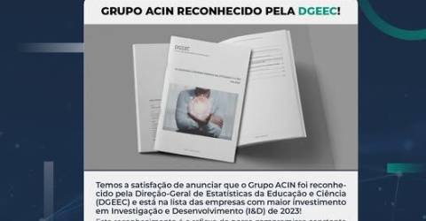 O Grupo ACIN foi reconhecido pela Direção-Geral de Estatísticas da Educação e Ciência (DGEEC) e está na lista das empresas com maior investimento em Investigação e Desenvolvimento (I&D) de 2023.