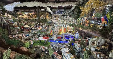 O presépio não cabe num único olhar. Obriga a parar, a aproximar-se, a voltar atrás. Seriam precisas horas para contemplar cada detalhe entre as mais de mil figuras que ali convivem, e para viajar cada canto do mundo ali representado. “Tenho algumas figuras guardadas, outras faço de novo. Desmonto umas coisas para fazer outras.” Nada ali é definitivo. O presépio está vivo, em permanente transformação.