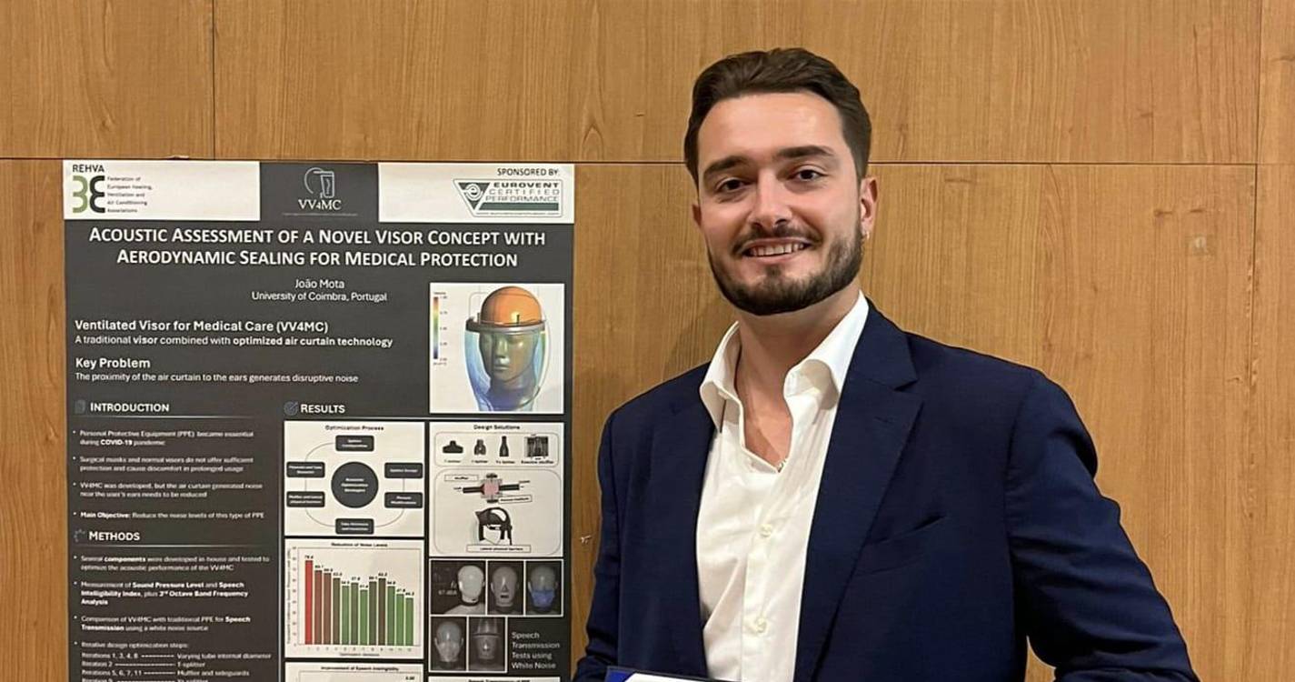“O trabalho do investigador da ADAI teve por base a sua tese, realizada no âmbito do Mestrado em Engenharia Mecânica, na especialidade de Energia e Ambiente, do DEM, e correspondeu à otimização acústica de uma viseira com vedação aerodinâmica para profissionais de saúde, desenvolvida no projeto VV4MC, do qual fizeram parte o DEM, a Faculdade de Medicina da UC, a ADAI e a empresa SET S.A. do grupo Iberomoldes”, esclarece a mesma fonte..