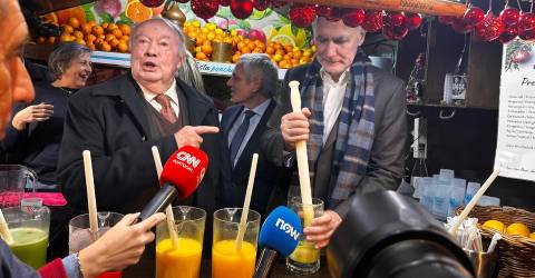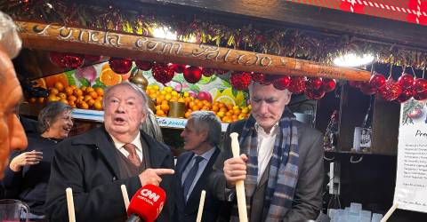 As interações continuaram e, a determinado momento, Jardim e o almirante entraram na barraquinha da “Poncha do Pescador”. O candidato assumiu a tarefa de fazer uma poncha e até andou a bater o limão com o mel.