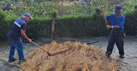 ‘Ceifar à Lua, Malhar ao Sol’, uma organização do Centro de Desenvolvimento e Inovação Sociocultural e Agroflorestal (CDISA), reúne, por esta hora, cerca de 40 pessoas, entre as quais dois malhadores e oito ceifeiras.