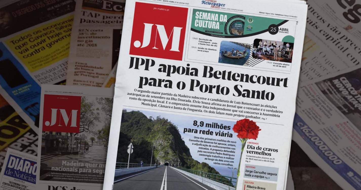 Esta é a notícia que faz a manchete de hoje do seu JM, numa Primeira Página que destaca 8,9 milhões para rede viária. Uma das primeiras medidas do novo Conselho de Governo foi aprovar, ontem, a adjudicação de melhoramentos nas estradas. A proposta defendida pelo secretário Pedro Rodrigues contempla trabalhos a realizar ao longo de dois anos em vários concelhos.