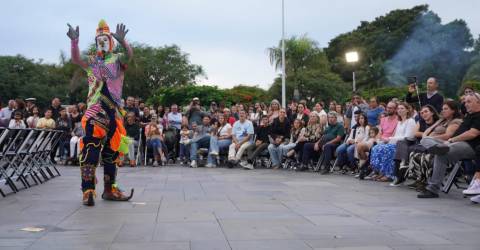 Sentado na primeira fila, o palhaço assiste ao lado das entidades oficiais ao vídeo que resume o que tem sido este festival, de ano para ano engrandecido com novos e surpreendentes espetáculos de rua, em que as estátuas vivas são imagem de marca.