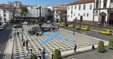 O Laço Azul colocado na Praça do Município ficará até ao final de abril, como forma simbolismo.