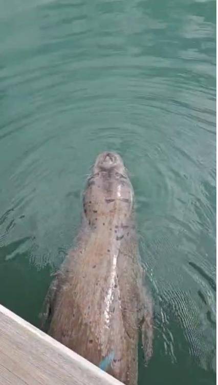 Nesta, que é uma visita rara, o animal ‘passeou-se’ entre as embarcações e foi captado em fotografias e videos como este que foi partilhado com o JM.