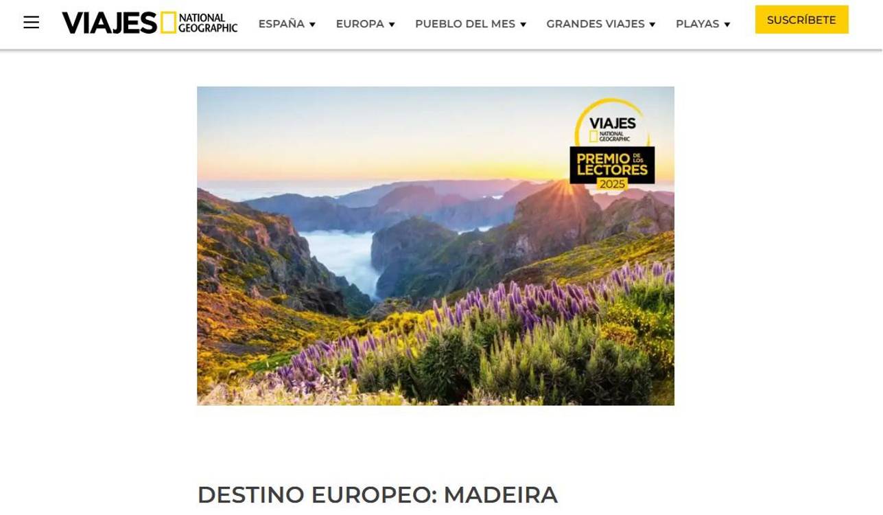 A Madeira foi eleita ‘Melhor Destino Europeu’ na edição anual do Premio de los Lectores 2025, da revista Viajes National Geographic.
