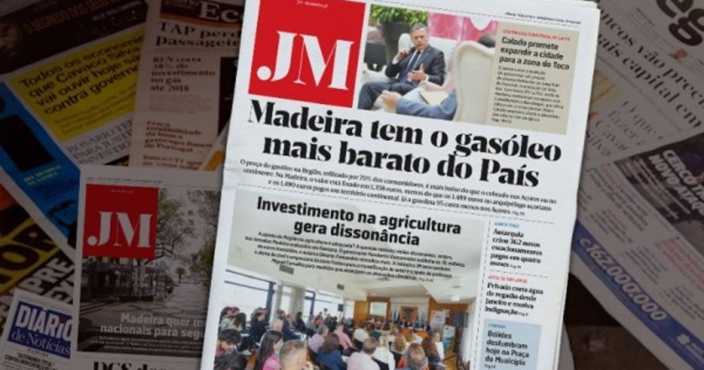 Esta é a notícia que faz a manchete de hoje do seu Jornal, numa Primeira Página que destaca mais uma iniciativa JM, Investimento na agricultura gera dissonância. A aposta da Região na agricultura é adequada? A questão motivou visões dissonantes, ontem, nas Jornadas Madeira realizadas em Santana. O governante Humberto Vasconcelos sublinha os 31 milhões de euros investidos, o autarca Dinarte Fernandes reivindica mais. A iniciativa JM teve também o alerta do chef e empresário Octávio Freitas para a massificação do setor e o apelo do professor Miguel Carvalho para medidas que antecipem as alterações climáticas.