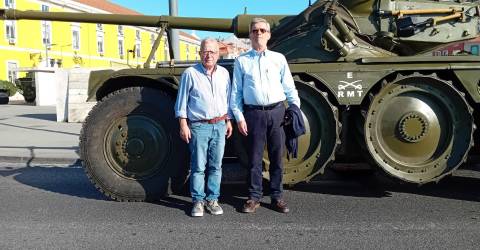 António Gonçalves teve oportunidade de conversar com antigos colegas, entre os quais o alferes Clímaco Pereira, chefe da viatura que integrou, com quem posou para a fotografia ao lado do tanque que dirigiu “até à liberdade”, como frisou.