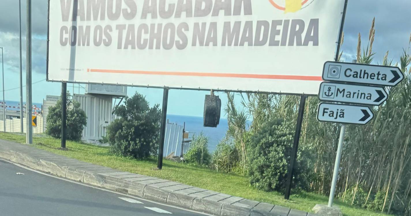 Esta manhã, os condutores que passam pela rotunda do Arco da Calheta deparam-se com uma cena insólita: uma mala de viagem pendurada num cartaz do Chega, numa clara alusão ao polémico caso que envolve Miguel Arruda que foi constituído arguido por suspeita do furto de malas no aeroporto de Lisboa.